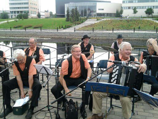 Tässä niin reipas ryhmä, ja näistä kuvassa olevista on lopullisesti poissa kuvassa vasemmalla takana ollut Matti Koski-Säntti, edestä keskeltä Jukka Savunen ja vieressään haitari sylissä ollut kunnia pj Risto Karlstedt.